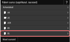 Valige laaditud ümbrike paberiformaat valikus [Paper Size].