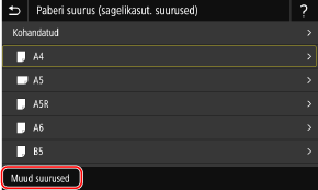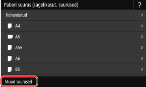 Kui laaditud paberi formaati ei kuvata, valige <Muud suurused>.