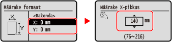 Kui eelprinditud paber laaditakse universaalalusele, ilmub ekraanile paberiformaadi seadistamiskuva. Sätete määramiseks toimige järgmiselt.