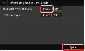 Seleccioneu primer <Desact.> a <Impr. auto (40 transmissions)> i, a continuació, <Aplicar>.