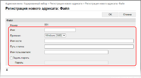 Регистрация FTP-сервера в качестве адресата в адресной книге (Удаленный ИП) (MF754Cdw / MF752Cdw / MF465dw / MF463dw / MF461dw)