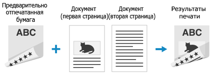 Выберите [Paper Feed] во всплывающем меню параметров печати, затем выберите источник бумаги, в который загружена предварительно отпечатанная бумага, во всплывающем меню [All Pages From].