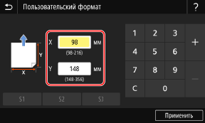Если загружена бумага пользовательского формата (MF754Cdw / MF752Cdw / MF465dw / MF463dw / MF461dw / MF275dw / MF272dw),