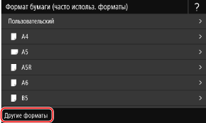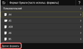 Если формат загруженной бумаги не отображается, выберите <Другие форматы>.