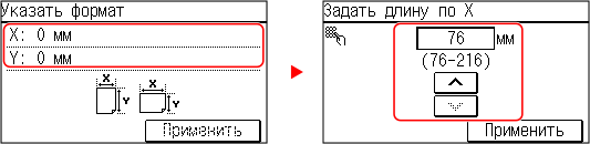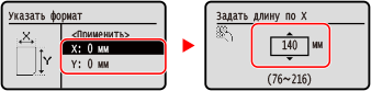 Выберите <X> или <Y> и введите длину каждой из сторон.