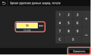 Измените время, до которого защищенный документ будет храниться в памяти, а затем выберите <Применить>.