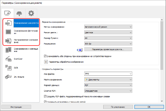 С помощью MF Scan Utility можно выполнять такие настройки, как ориентация оригинала при сканировании и формат файла при сохранении.