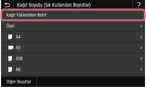 Yüklenen kağıdın kağıt boyutu görüntülenmiyorsa <Diğer Boyutlar> öğesini seçin.
