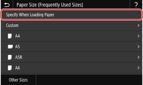 בחר <Specify When Loading Paper>.