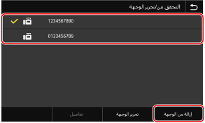 إذا كان إدخال الإرسال السابق في السجل تم تنفيذه إلى وجهات متعددة، فسيتم عرض الوجهة الأولى فقط في السجل، ولكن تحديد الإدخال يحدد جميع الوجهات.
