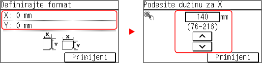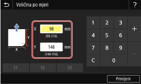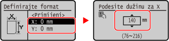 Odaberite <X> ili <Y> i unesite duljinu svake strane.