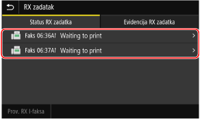 Na kartici <Status RX zadatka> odaberite dokument za prosljeđivanje ili brisanje.