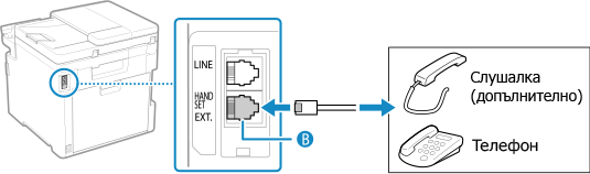 Когато свързвате външен телефон или допълнителна телефонна слушалка: Свържете се с