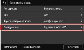 Введіть ім’я, яке потрібно зареєструвати в адресній книзі, і виберіть <Застосувати>.