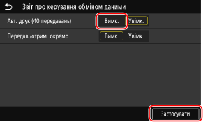Виберіть <Вимк.> у <Авт. друк (40 передавань)>, потім виберіть <Застосувати>.