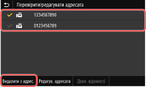 У разі вимкнення апарата одержувачі, які використовувалися раніше, будуть видалені й ви не зможете використати цю функцію.