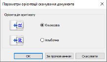 Клацніть [Параметри орієнтації сканування документа] і налаштуйте напрямок сканування оригіналу, розташованого в подавачі. Не можна змінити напрямок сканування для оригіналу, розташованого на склі експонування.