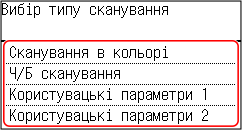 Виберіть [Сканування документів], [Сканування фотографій] або [Настроюване сканування].