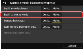 <Faxaren memoria-blokeoaren ezarpenak>.
