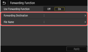 Select <On> in <Use Forwarding Function>.