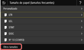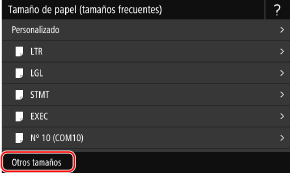 Si no aparece el tamaño de papel cargado, seleccione <Otros tamaños>.