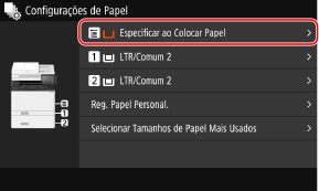 Os tamanhos de papel usados frequentemente são predefinidos. Para habilitar a configuração de tamanho de papel ao carregar o papel, siga as etapas abaixo.
