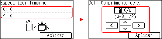 Especifique o comprimento do lado <X> e do lado <Y>.