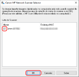 Ao conectar a máquina a um computador via LAN sem fio ou LAN com fio, registre a máquina em "MF Network Scanner Selector".