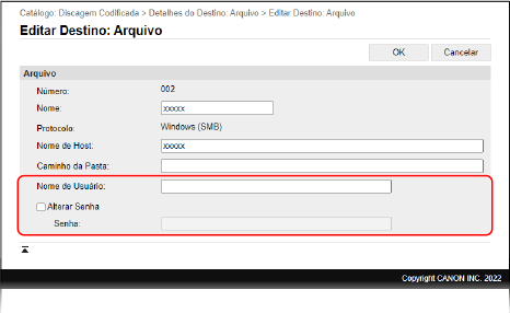 Restrições de acesso às configurações de uma pasta compartilhada (UI Remota) (MF753Cdw / MF751Cdw / MF465dw / MF462dw)