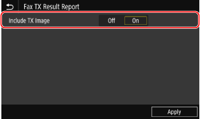 If you want to include a part of the transmitted original in the transmission result report, select <On> for <Include TX Image>.