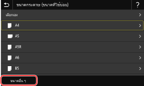 หากขนาดกระดาษของกระดาษที่ใส่ไว้ไม่แสดงขึ้นมา ให้เลือก <ขนาดอื่น ๆ>
