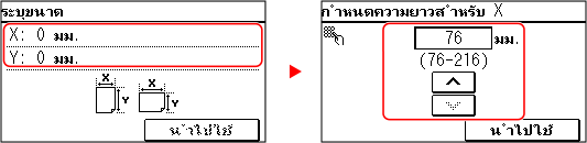 เลือก <X> หรือ <Y> และใส่ความยาวของแต่ละด้าน