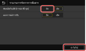เลือก <ปิด> ใน <พิมพ์อัตโนมัติ (การส่ง 40 ชุด)> และเลือก <นำไปใช้>