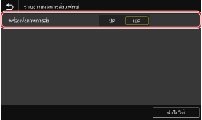 หากคุณต้องการรวมส่วนหนึ่งของต้นฉบับที่ส่งในรายงานผลการส่ง ให้เลือก <เปิด> สำหรับ <พร้อมทั้งภาพการส่ง>