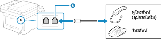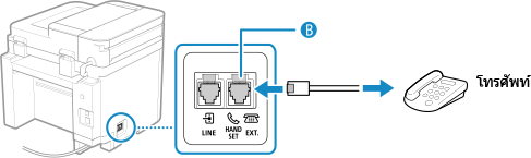 เมื่อเชื่อมต่อโทรศัพท์ภายนอกหรือเครื่องตอบรับโทรศัพท์อัตโนมัติ: ให้เชื่อมต่อสายโทรศัพท์จากโทรศัพท์กับแจ็คโทรศัพท์ภายนอก