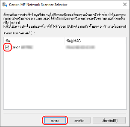 เมื่อเชื่อมต่อเครื่องกับคอมพิวเตอร์ผ่าน LAN แบบไร้สายหรือ LAN แบบผ่านสาย ให้ลงทะเบียนเครื่องใน "MF Network Scanner Selector"