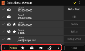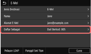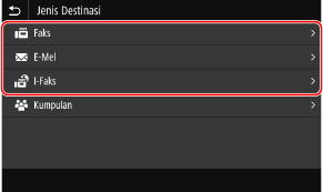 Bergantung pada jenis destinasi untuk mendaftar, pilih <Nombor Faks>, <Alamat E-Mel>, atau <Alamat I-Faks>.