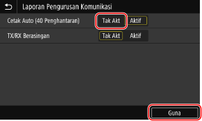 Pilih <Tak Akt> dalam <Cetak Auto (40 Penghantaran)> dan pilih <Guna>.