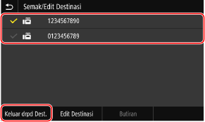 Pilih destinasi untuk dipadamkan, dan pilih <Keluar drpd Dest.>.