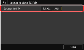 Jika anda ingin memasukkan sebahagian daripada dokumen asal yang dihantar dalam laporan hasil penghantaran, pilih <Aktif> untuk <Sertakan Imej TX>.