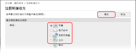 要注册共享文件夹或 FTP 服务器接收方,请选择 [文件]。