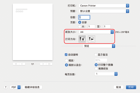 步骤 2 指定纸张尺寸和纸张类型