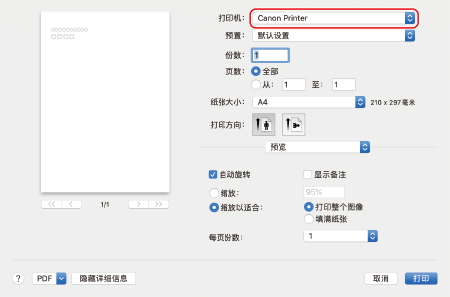 在 [打印机] 中选择本机。