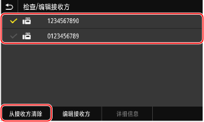 如果 <限制新接收方> 设置为 <打开>,则之前使用的接收方将被删除且无法使用此功能。请将设置更改为 <关闭>。