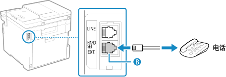 连接外接电话机或应答机时:将电话线路从电话连接至本机上的外接电话插孔