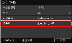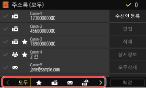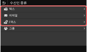 등록할 수신인 유형에 따라 <팩스 번호>, <이메일 주소> 또는 <I 팩스 주소>를 선택합니다.