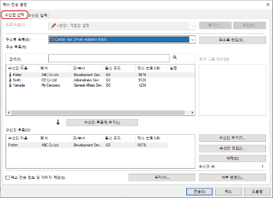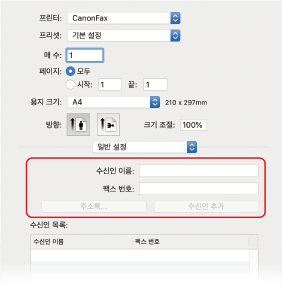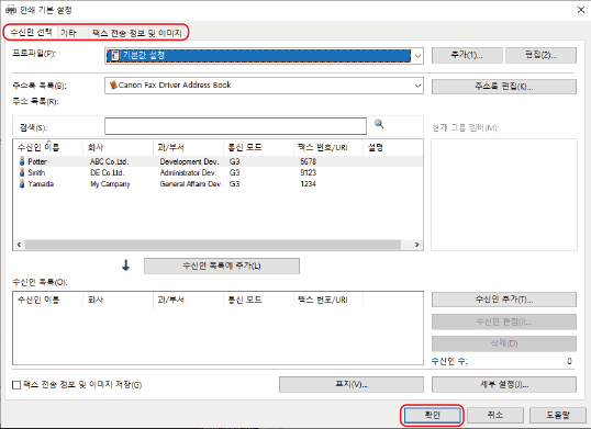 운영 체제 및 팩스 드라이버 버전에 따라 여기에 사용되는 팩스 드라이버의 스크린샷이 화면에서 실제로 보는 것과 다를 수 있습니다.