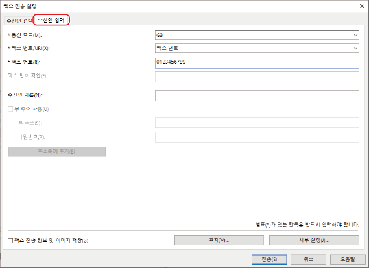 [팩스 번호] 또는 [URI]를 선택합니다.
