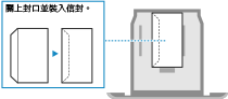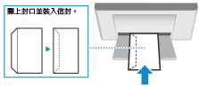 以信封口朝向左側且正面(列印面)朝上的方式裝入信封。