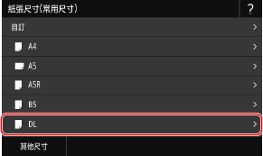 在多用途紙盤中裝入信封時,顯示器上會出現選擇紙張尺寸的設定畫面。請依照下列步驟來指定設定。